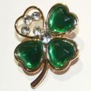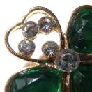 ゴールド色に緑色の葉っぱ、5個のラインストーンが入って可愛いブローチです。