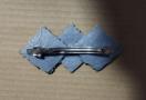 シルバーグレーのレースの四角いモチーフが3個連なったバレッタ