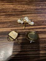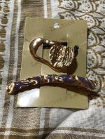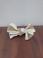 ゴールドベージュ刺繍に パールの縁取りがエレガントな楕円の バレッタ風ぱっちんどめのヘアピン
