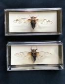 画像5枚目のエゾゼミの標本2ケースです。自分で標本にしたものです。