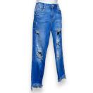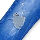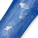 フロントと尻ポケットにダメージ加工が施されたデニムパンツ