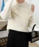 オープンショルダーで絶妙な肌魅せが可愛い長袖ニットトップス。
