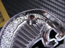 1994〜2004 マスタング コブラ SVT スネーク CHクローム&BLACK メタル製 エンブレム 新品未開封品です。メタル製で凹凸仕様のエンブレムです。スポーティーにドレスアップ用にいかがでしょうか! ■仕様■ 本体のサイズ・幅6センチ 縦9.5センチ 厚み5ミリ メタル製 立体凹凸デザイン仕様 両面テープ付属します。エンブレム本体の裏側にボルト用タップが2か所有りますので固定用、ボルト・ナットをご用意いただければグリルにも装着できます。取り付け用ビスナットは付属しませんのでご注意ください。同デザインでコブラ&ゴールドメッキ仕様もございますので、お問い合わせください。本体はベースのクロームメッキ仕上げにブラックを着色しています。 商品仕様の感じ方や評価には個人差がございますので合わせてご理解ください。こちらの商品は生産工程上で発生したと思われる、多少のメッキむら・曇り・キズ・くすみ・すれ・バリ等が有る場合がございます。商品の仕上がりは、画像を参考に状態を十分ご理解・ご確認頂きましてご購入をお願い致します。商品は、ゆうメール便にて発送致しました。