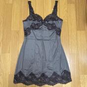 胸元には高級感のある同色レースが付いており、裾にはひらひらシフォンフリル付き。膝よりも上の丈になり、肩のストラップは調整可能です。