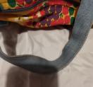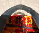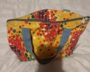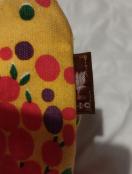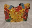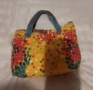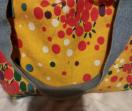 イエロー地に赤、グリーン、白のドットフラワープリントのミニトートバック