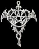 EastGate Draco Pentagram ドラコ・ペンタグラム、五芒星龍。左右に巨大なドラゴン双龍が五芒星を囲み、無限の円を掴んでます。この象徴的なデザインは、高次の存在との接触や、全体的な保護、神の意志を象徴しています。シルバー製ブラックコードが付属し、T字型のチャームになってます。このドラゴンペンダントは、シンプルなデザインでありながらも、存在感があります。シルバー製の本物の龍のスケールと細部のディテールが魅力です。