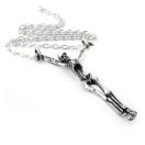 磨かれたピューター製の伸びたスケルトンが、スプリット トレース チェーンに吊り下げられています。P190