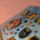 数十年前の物なので接着部分が劣化して大きめのシールは台紙から浮いています。