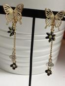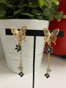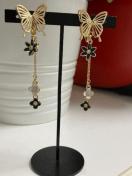 ハンドメイド 花のチャームを使用したバタフライのイヤリングになります。