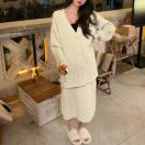 ゆったりラフに羽織れるカーディガンとニットスカートの上下セットアップです