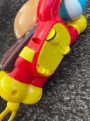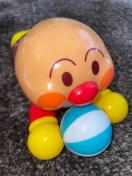 ヒモを引っ張り上げて背中をポンと叩くとアンパンマンがボールを追いかけます