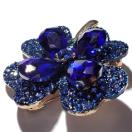 ゴールド色にブルー色の葉っぱ、大粒と小粒のラインストーンが入って可愛いブローチです。