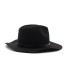 ロングブリムの生み出すハンサムエレガントなシルエットに注目。細めのレザーベルトでスッキリ感もプラス。