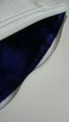 ホワイトのレザー調、内側はブルー、シンプルで素敵なデザインです♪