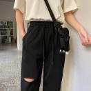 リラックス感たっぷりのダメージ加工薄手スウェットパンツです