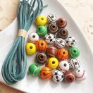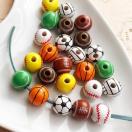 野球・サッカー・バスケットボール・バレーボール・テニス・ラグビーなどのボール柄のウッドビーズです。