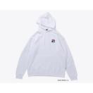 胸にワンポイントのコラボレーションロゴを配置したパーカー。