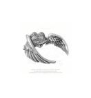 黒のエナメルをあしらった、ピューター製のウィング ハート バングル。