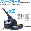 スリープモード機能:はんだこてをこて台に置いて10分後にスリープモード機能が動き、こて先の温度が下がりはじめ、有効的にこて先の酸化を抑えます。
