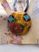 和柄の生地でくるみボタンのヘアゴムを作りました。