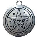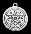 五芒星を中心に、男性性と女性性、月の満ち欠けなどを表す様々なシンボルを細かく配置した魔女のペンタクルです。大自然のエネルギーを感じ、地球そのものであるこの大地や精霊たちとのコンタクトを支える、賢き魔女のためのシンボル・ペンダントです。