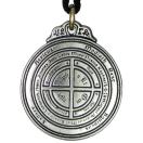 実在するグリモワール(魔術書)に記述されている護符に基づくタリスマン。天使や神の名、占星術、錬金術、魔術のシンボルなどが散りばめられています。Pewter(白目)という合金製。付属のブラックコード(黒紐)長さ90cm。