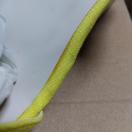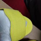 左足の前部分に糸のほつれ、両足裏にあたる部分の接着剤はみだしあります。