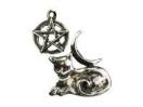 神秘的な月猫と一緒に三日月の魔力を感じてください。AzureGreen Mystic Moon Cat Amulet(アズールグリーン ミスティック ムーン キャット アミュレット)は、ピューター製のお守りペアで、三日月の下には猫と、別に小さな五芒星が付属しています。アメリカ製であり、コードも付属しています。