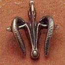 牡羊の頭部を象ったペンダントです。エジプトの多くの神や女神は人間の胴体と動物の頭部をもった姿によって現され、その動物は神々の特性を象徴するものが割り当てられています。太陽神ラーは鷹、死者の神アヌビスはジャッカル、そして牡羊によって表されたのが豊穣の神ハルサフェスで、生殖力や男らしさを象徴しています。ヌビアの王家の墓から発掘された遺跡を元に復刻した美しいデザインです。ブラックコード付。(T:3.5cm)