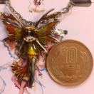 商品説明黄色、赤、オレンジ色の蝶の羽を後ろに広げた妖精の形をしたこの 1 1/2 インチのペンダントは、目を見張るものがあります。足首で足を交差させ、エレガントなガウンを身にまとい、彼女は降りてきます。天から優雅な恵みとともに