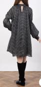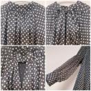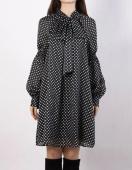 Rirandtureリランドチュールブラックホワイトシースルードットパフチュニックワンピースリボンシフォン黒白