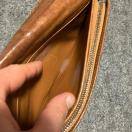 バックに小銭入れがついていて、取り出しやすくなっています。また、L字ファスナー。