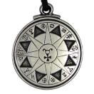 旅人の護符。錬金術と占星術のシンボルによる魔法の力が働き、このタリスマンは所有者の旅(物理的であれ、精神的なものであれ)をガイドし、保護するでしょう。ブラックコード付。(T:3.1cm)