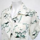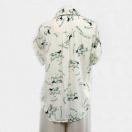 オープンカラーの半袖シャツで、袖口ロールアップデザイン。