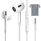 有線イヤホン マイク付き 3.5mm イヤホンマイク ノイズキャンセリング HiFi 重低音 音量調整 通話対応 高遮音性 オンライン会議 ヘッドホン 収納袋付き ios/iPhone/iPad/Android/PC/全ての3.5mmインターフェース機器に対応 (ホワイト)