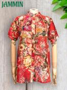 アジアンな植物刺繍入りの花柄半袖シャツです。
