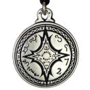 このお守りのデザインは、その役人が出版した原稿からインスピレーションを受けました。シンボルは完全に説明されていませんでしたが、シンボルの一部は「天使のシゲル」、錬金術のシンボル、そして「魔法の天使のアルファベット」の文字です。