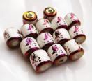 白地にメタリックカラーの模様がメッキされたガラスビーズです。