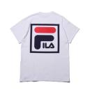 大きなバックプリントが目を惹く一枚。フロントにはFILAフォントのグラフィックによるATOMOSロゴをプリントし、コラボレーションを代表する仕上がりに。