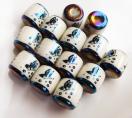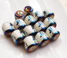 白地にメタリックカラーの模様がメッキされたガラスビーズです。
