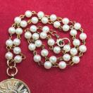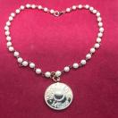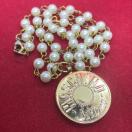 丸いペンダントヘッドにフェイクパールのチェーンが付いています。