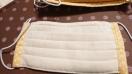 ダブルガーゼ。テクノロート(プラスチィック製の形状記憶の針金)がはいっているので鼻にピッタリします。抗菌ゴムを使っています。立体なので息苦しくなりにくいです