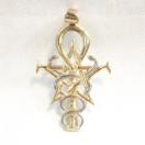 ゴールドのディテールが施されたスターリングシルバーのペンダントは、3つの古代の知恵のシンボルを1つに統合しています。