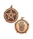 魔術儀式の際、このペンダントをアナーハタ・チャクラ(ハート・チャクラ―胸の部分)の上に身につけるのが理想です。同時に、建物や部屋の入り口にもペンタクルや保護のタリスマンをかけておくと良いでしょう。すべての元素をもれなくタリスマンとあなた自身にもたらし、神の保護を得ることができるでしょう。直径約6cmと、やや大きめのサイズです。