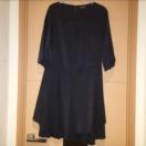 ウエスト下辺りが切り替えになっていて、裾は長さが違う2枚仕立てで、フレアになってとてもエレガントにデザインされています。