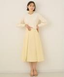 ウエストヨークでしっかりマークし、スカート部分はお腹周りはふくらみが気にならないよう、タックを中心に向けています。きれいなフレアーラインなので、シンプルなトップスと相性が抜群。