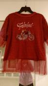 赤Tシャツ ボーダー白ライン バイクガール柄 フリーサイズМ
