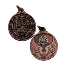 魔術儀式の際、このペンダントをアナーハタ・チャクラ(ハート・チャクラ―胸の部分)の上に身につけるのが理想です。同時に、建物や部屋の入り口にもペンタクルや保護のタリスマンをかけておくと良いでしょう。すべての元素をもれなくタリスマンとあなた自身にもたらし、神の保護を得ることができるでしょう。直径約4cmのサイズです。