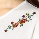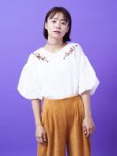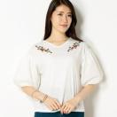 フェイスラインをすっきりとした印象に見せてくれるVネックに、旬な刺繍デザインをあしらったプルオーバー。