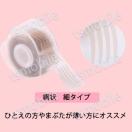 ひとえの方やまぶたが薄い方には細タイプをオススメ。奥ふたえの方やまぶたの厚い方には太いタイプをオススメ。